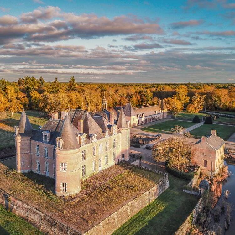 Located in the Loire Valley less than two hours from Paris and built on foundations dating back to 980 AD, the estate of La Ferté-Imbault features a remarkably preserved ensemble from the 16th and 17th centuries, including the main château, the outbuildings, the pavilions, the moats, the double terrace, the gardens and the park. Completed in 1627 and presenting a harmonious composition of architecture and landscape, its design is a manifest synthesis of its history: both a fortress (hence the name Ferté) with an imposing silhouette evocative of a glorious military past, and an elegant château with large windows and sculpted facades revealing all the refinement of the Renaissance spirit and the Age of Enlightenment. (adapted from sumijo-isc)