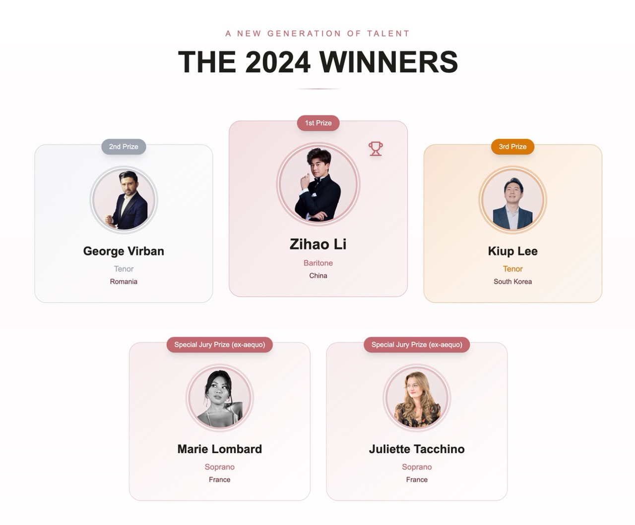 Finalists: Often receive opportunities to perform as special guests with Sumi Jo at international concerts.